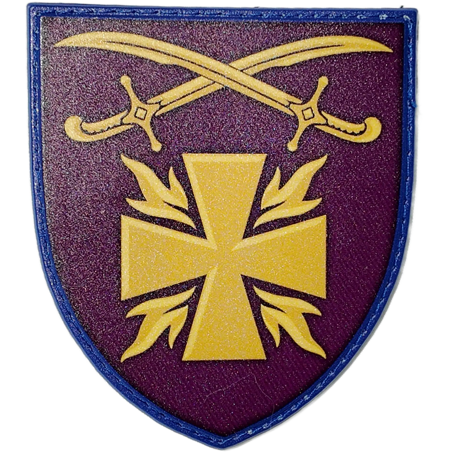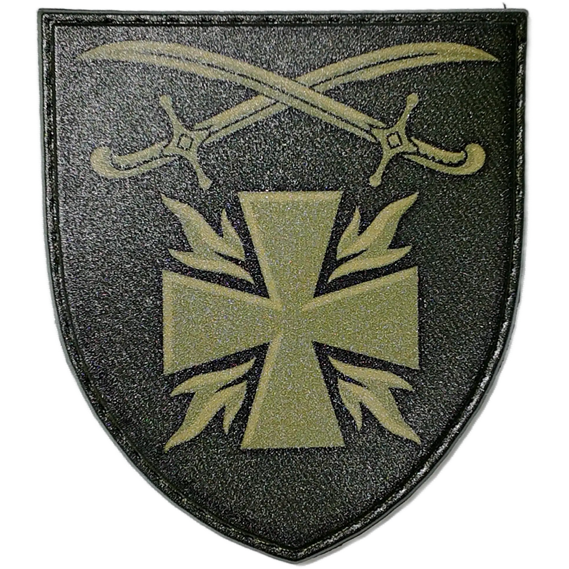 The design showcases two crossed sabers above a stylized cross, symbolizing the brigade’s strength, resilience, and commitment to Ukraine’s sovereignty.