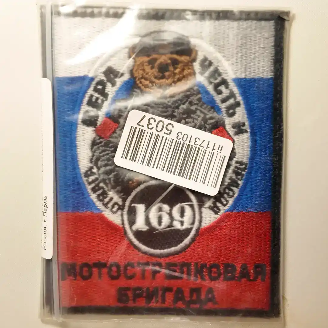 The 169th Motor Rifle Brigade Patch is a 10×7.5cm sleeve insignia of the Russian Ground Forces. The patch features a bear emblem, a traditional symbol of Russian strength and resilience, associated with the unit’s identity.