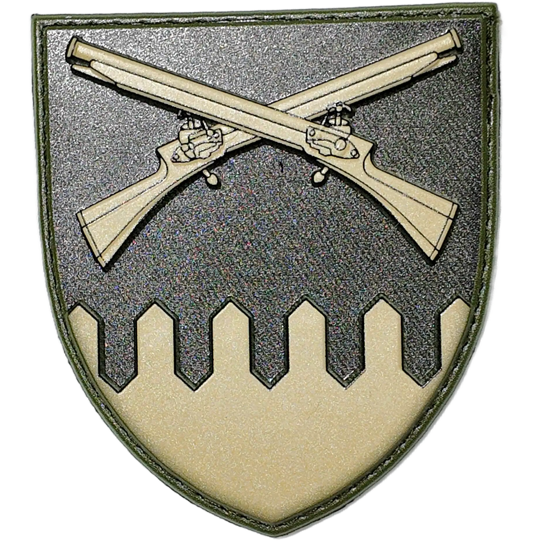 The design features crossed muskets above a stylized fortress wall on a shield, symbolizing the brigade’s strength, resilience, and readiness for rapid deployment.