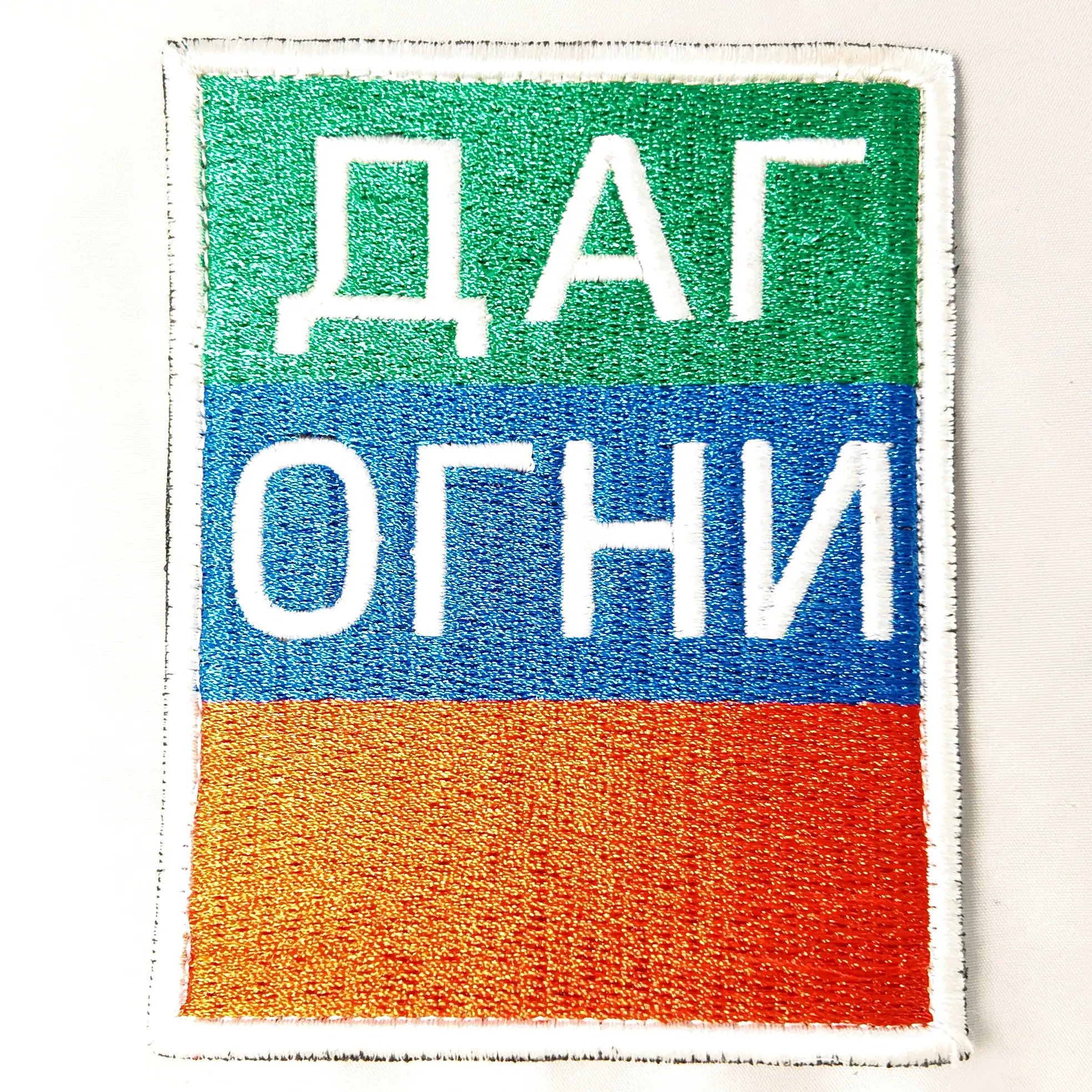 The Dagestanskie Ogni patch 10×8cm is an original city insignia from Dagestan, featuring the recognizable green, blue, and orange tricolor with clear Cyrillic lettering. As a regional badge, it is designed to represent the city of Dagestanskie Ogni and its unique identity within the Republic of Dagestan. The patch is embroidered on quality fabric, ensuring durability for daily wear or for inclusion in a serious collection of Russian regional memorabilia.