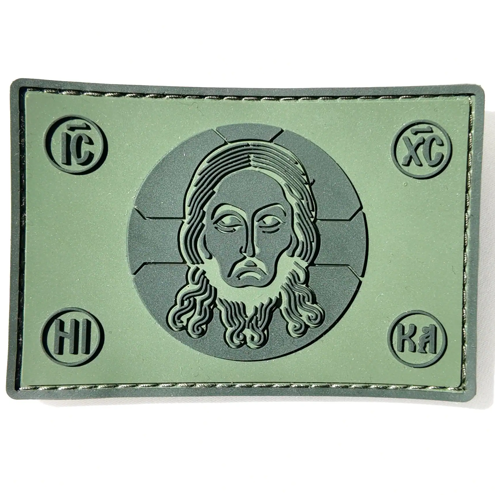 This compact PVC patch features the Holy Mandylion (Spas Nerukotvorny), a revered image of Christ’s face not made by human hands. Embossed in military green and black, the patch includes traditional Slavonic inscriptions: IC XC, НИ КА – abbreviations for “Jesus Christ Conquers.”