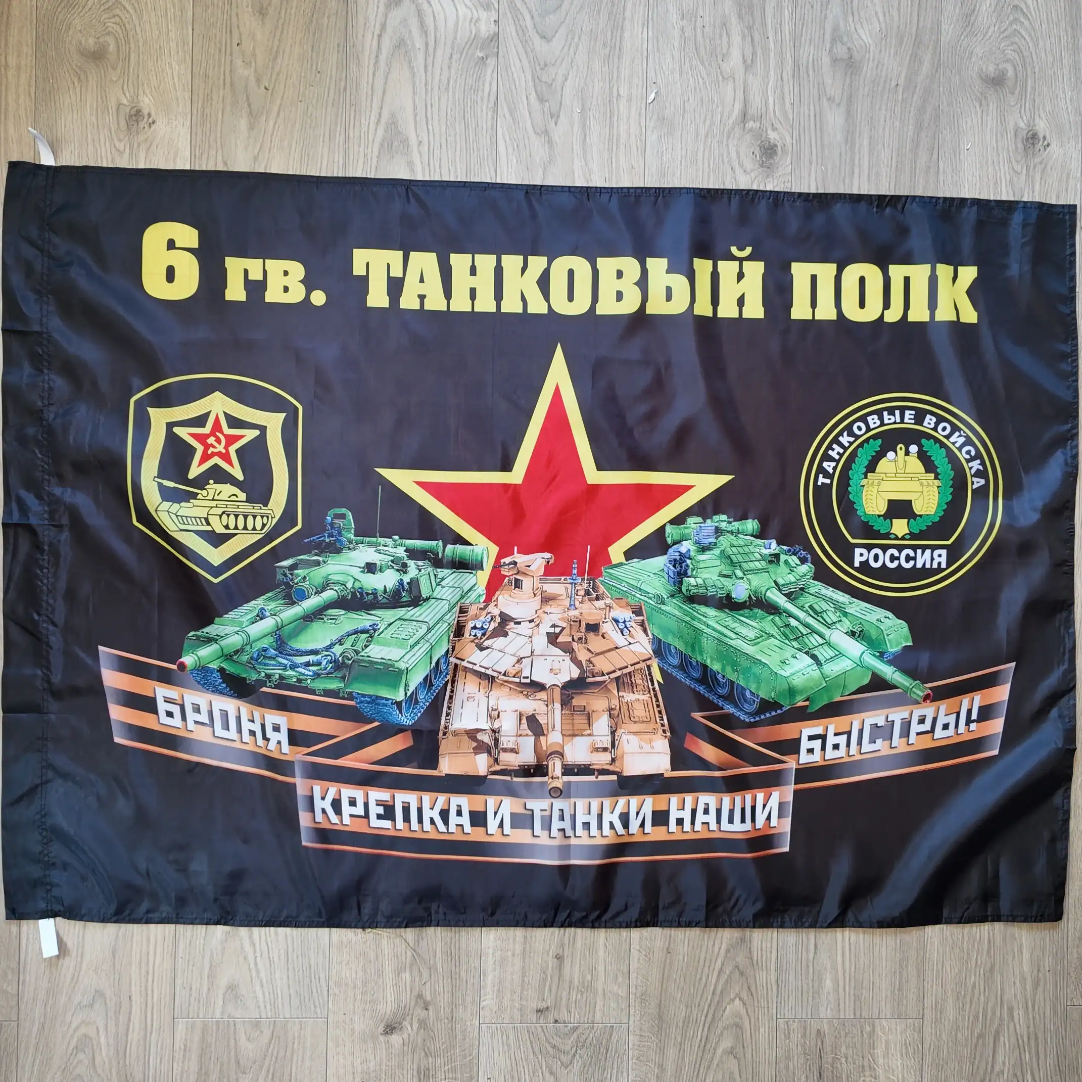 The slogan “Броня крепка и танки наши быстры” originates from a famous Soviet song and became a motto embedded into armored forces identity — representing power, speed, and impenetrability. Flags with this inscription remain popular across modern tank divisions.