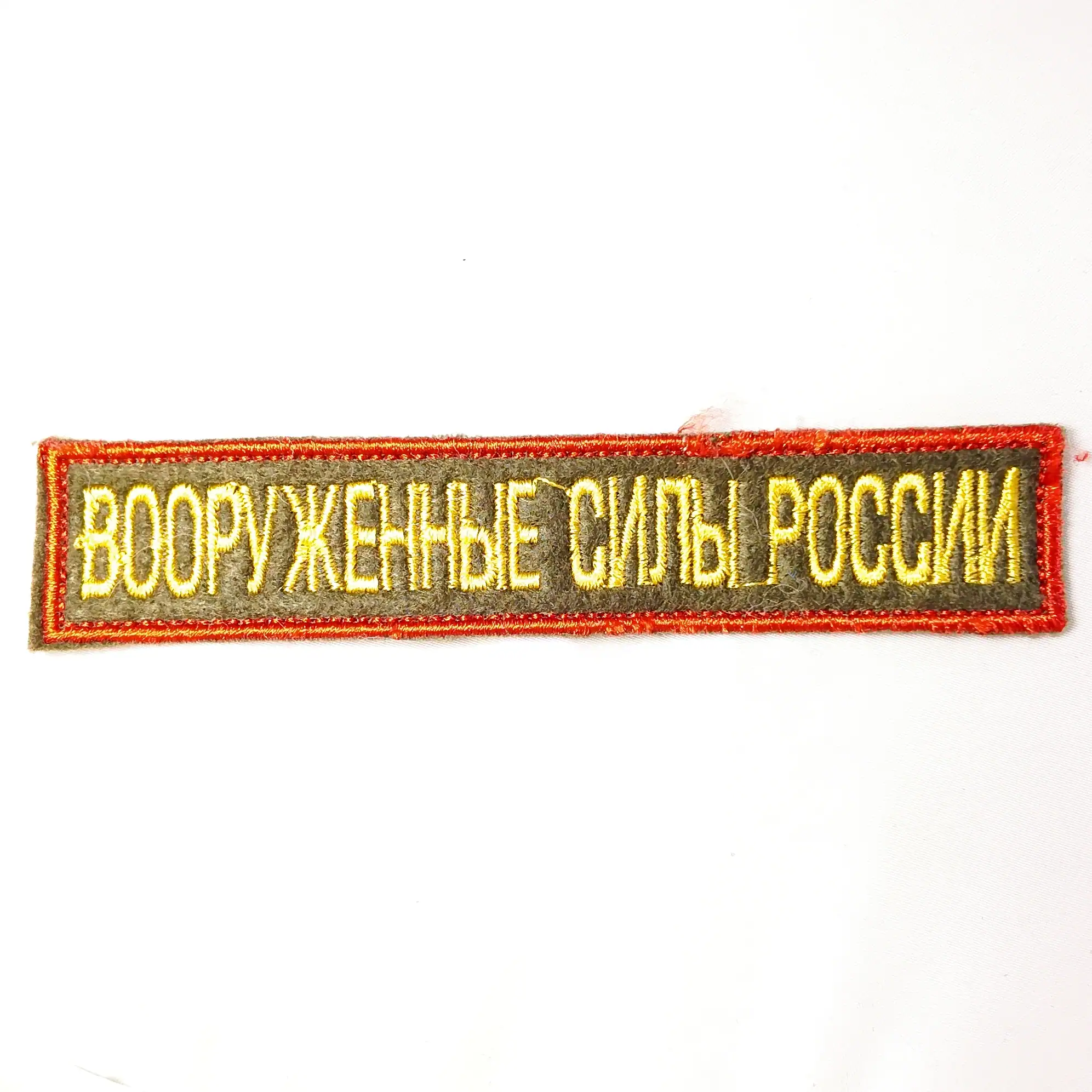 The “Вооружённые силы России” tab is a standard issue item for Russian military personnel, representing the armed forces as a whole rather than a specific branch. Adopted in the post-Soviet period, this patch is worn by soldiers, officers, and contract servicemen on daily, parade, and field uniforms. It signifies membership in Russia’s unified armed forces, an essential element of identity for modern military staff and a classic collectible for enthusiasts.
