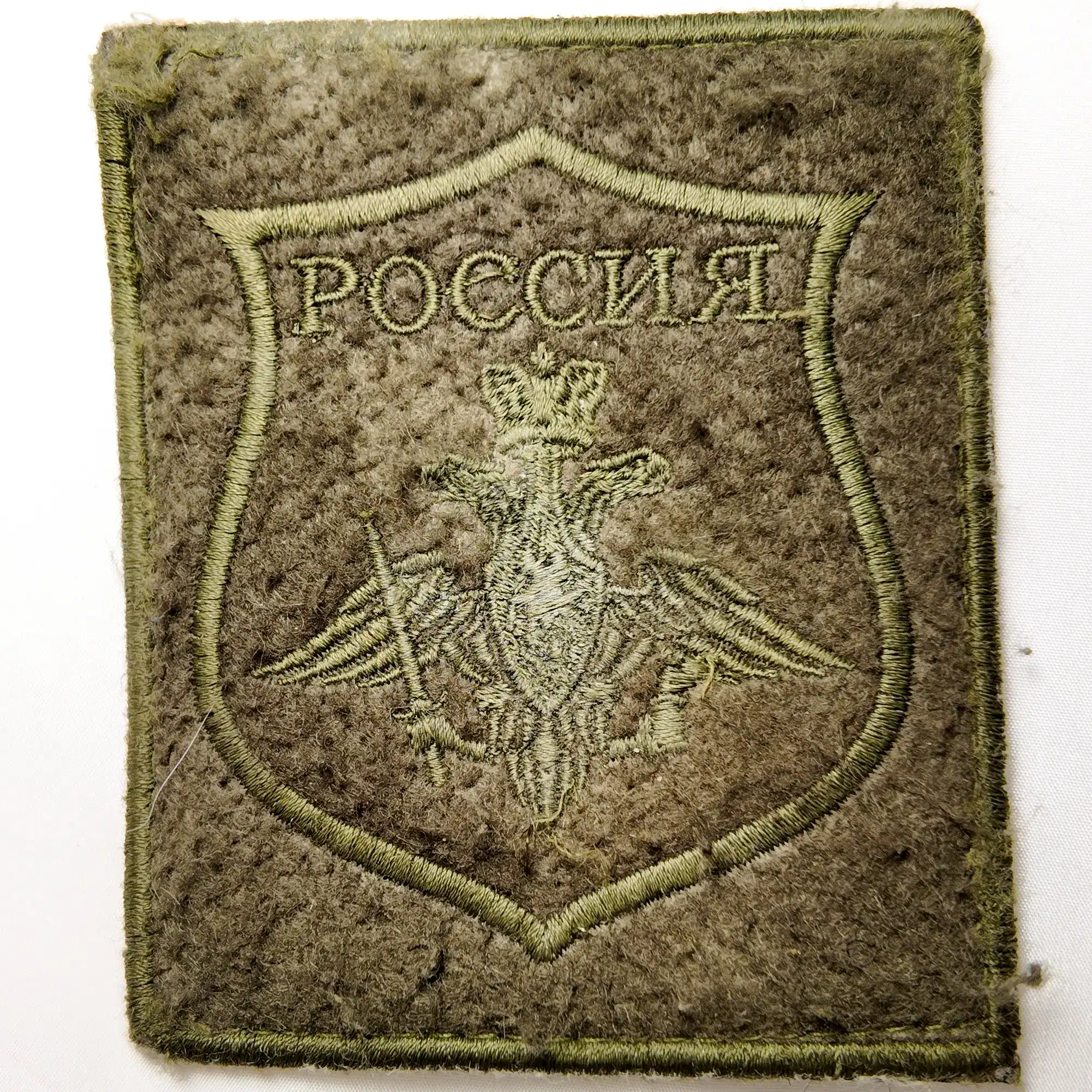 The subdued olive design was intended for camouflage uniforms, which makes it a field combat insignia distinct from parade or dress patches. Collectors consider it an original Russian army trophy patch and a significant addition to modern conflict memorabilia.