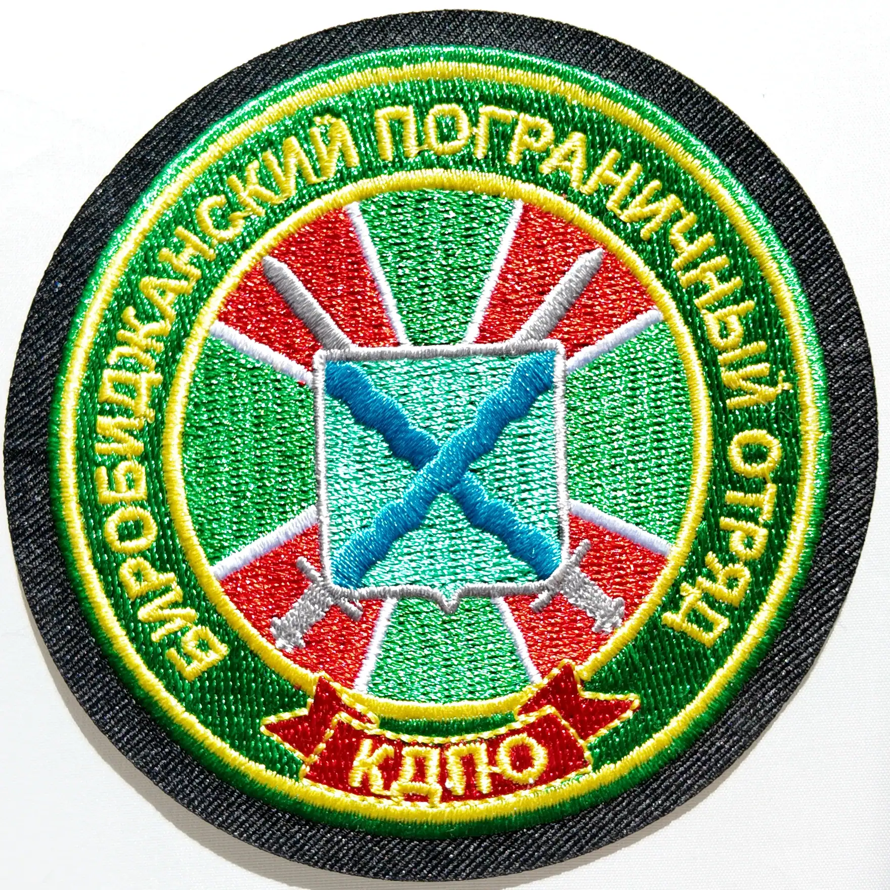 The Russian Birobidzhan Border Detachment Patch 9 cm is a Far East frontier guard badge produced for use by members of the Birobidzhan Border Detachment. The insignia is designed in a 9 cm format, suitable for application to operational and dress uniforms of the border service. It is listed as an official sleeve patch for border troops in regulatory documentation and personnel supply lists.