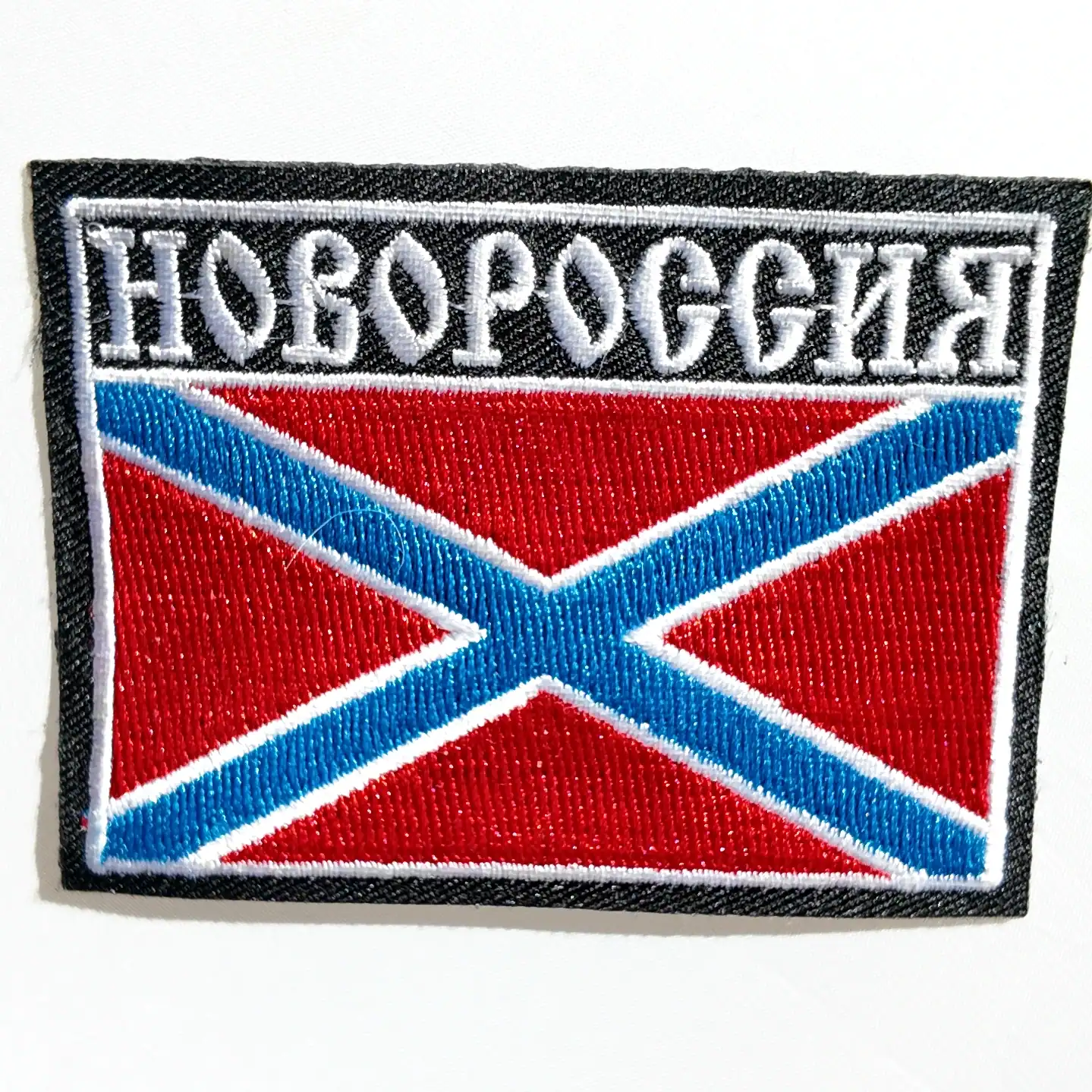 Embroidered in the colors of the Novorossiya flag, this patch complies with standard military sizing and is recognized in the field. The design is used as a Russian army embroidered flag patch and is compatible with both modern and replica uniform sets. The item is produced for operational, commemorative, and reenactment purposes, identified as an adhesive flag insignia.