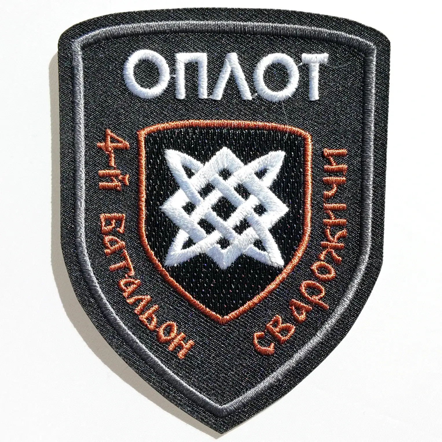 This Russian Oplot 4th Battalion Svarozhichi Patch 10×7.5 cm is an iron-on field badge featuring the star of Rus and text identifying the “ОПЛОТ” brigade and “4-й батальон Сварожичи.” The badge is manufactured on a heat-activated adhesive backing for secure attachment to uniforms used in the DPR conflict. Iron-on application requires covering with cotton and pressing with a standard iron; no sewing or Velcro is needed.
