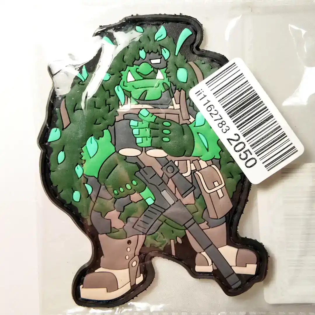 The Russian ORC FPV Operator Patch is a modern PVC insignia sized 8.5x6cm. It depicts a green cartoon-style orc soldier in camouflage with rifle and gear, representing the FPV drone operator role. The exaggerated design has become popular among Russian servicemen and volunteers who adopted drone warfare tactics during the war in Ukraine.
