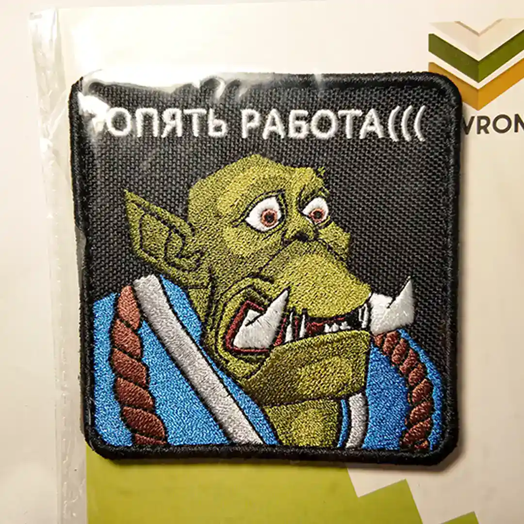 This embroidered insignia is part of modern Russian meme-inspired patch production, valued by collectors for its unusual artwork and recognizable theme. It fits easily into a collection of Russian military-style patches, standing out with its clear orc character and border slogan.
