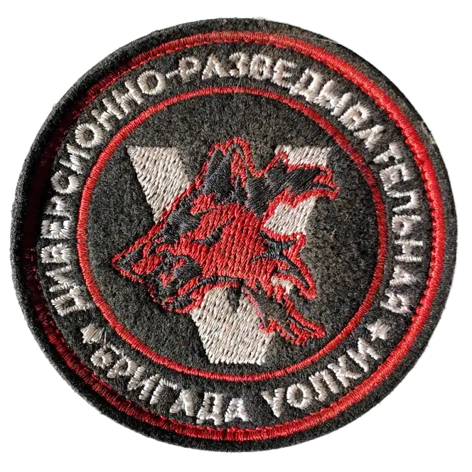 Patch of Volunteer Diversionary Reconnaissance Brigade “Wolves” (Vолки) with velcro. Size: 8.5 cm.