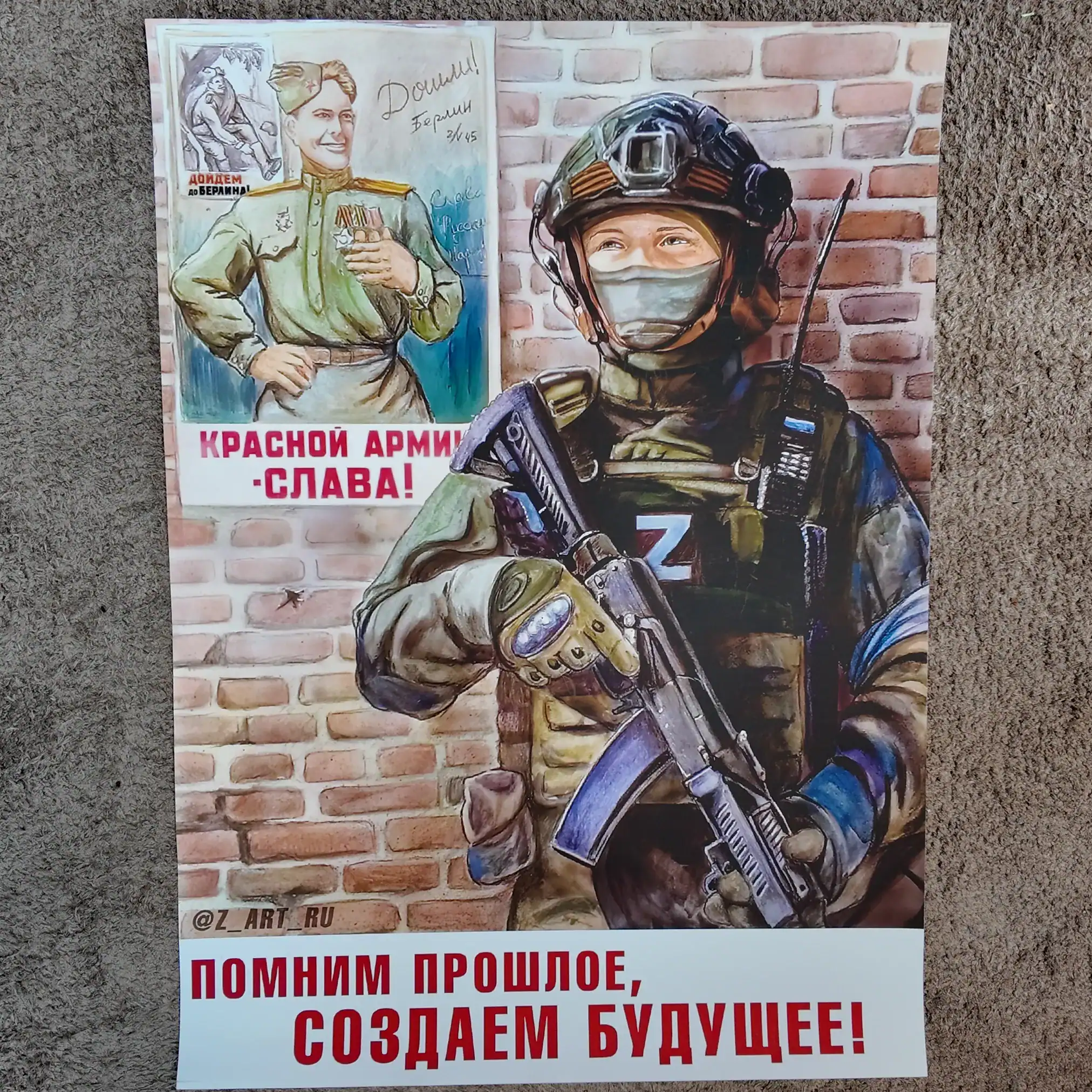 This collectible Z symbol art merges authentic patriotic wall poster tradition with the message of Russian army heritage.