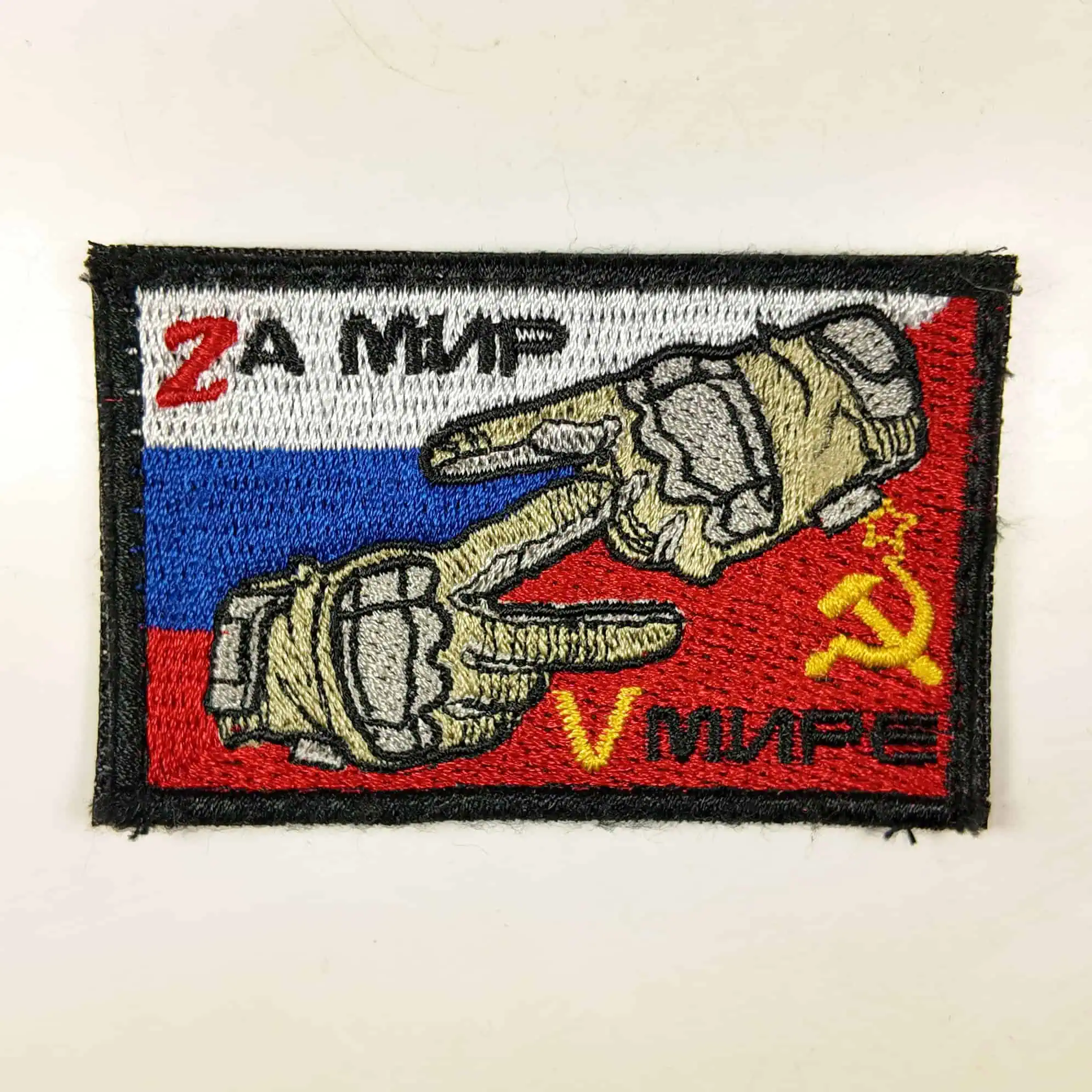 The “For Peace” tactical patch features a striking design that merges elements of Russian patriotism and Soviet-era symbolism. It includes the Russian flag in vibrant colors, the hammer and sickle emblem, and skeletal hands making a peace gesture, accompanied by the text “За Мир” (“For Peace”). This patch is ideal for collectors, military enthusiasts, or as a symbol of solidarity.