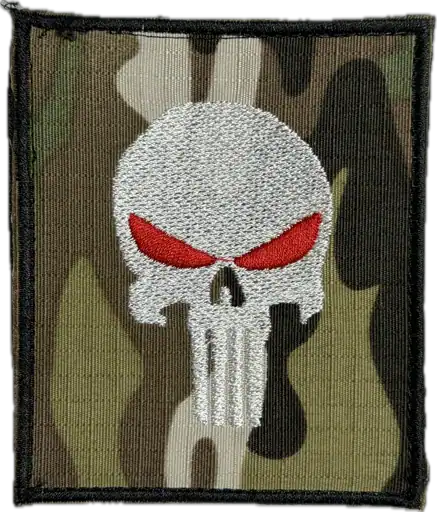 Although the skull design is commonly recognized in popular culture, in this context it functions purely as a symbolic emblem rather than a reference to a specific fictional character or organization. The imagery conveys an abstract message of severity and resolve without linguistic text or unit designation.
