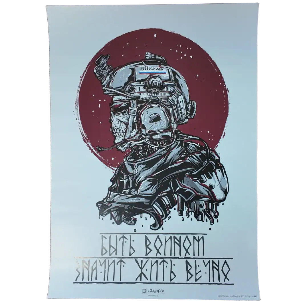 Skull Operator Combat Poster “Warriors Live Forever” – 70×50 cm