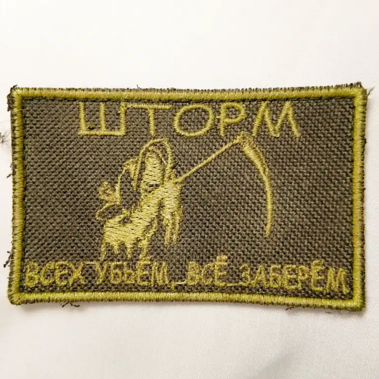 This patch is associated with Storm Z units formed from prison recruits and used in high-risk operations. Recovered as a trophy battlefield patch from Ukraine, it is recognized as a rare convict insignia and sought after by collectors of modern conflict memorabilia.