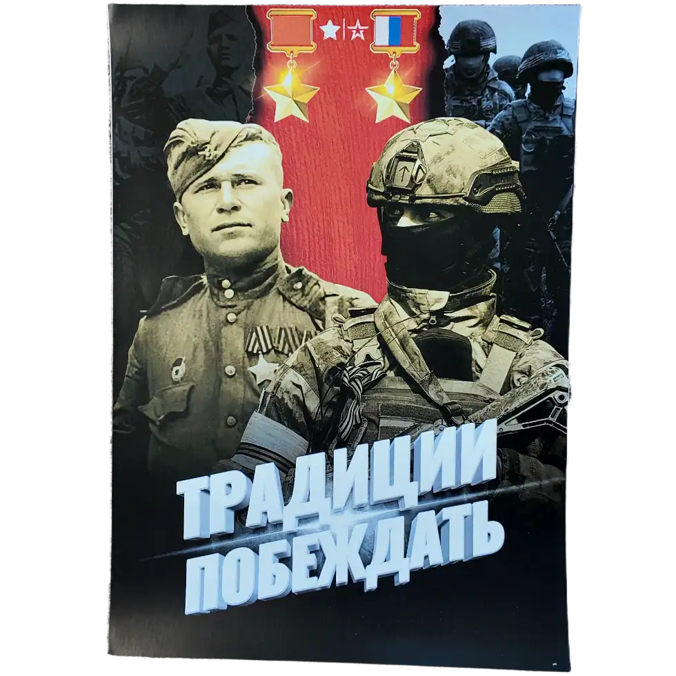 Tradition to Win Russian Patriotic Poster Soviet & Modern Soldier – 30×42 cm Variant 2