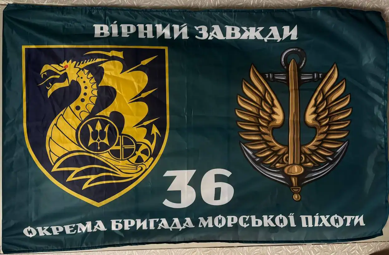 Ukrainian 36th Marine Brigade Flag – 120×80 cm with Dual Emblems