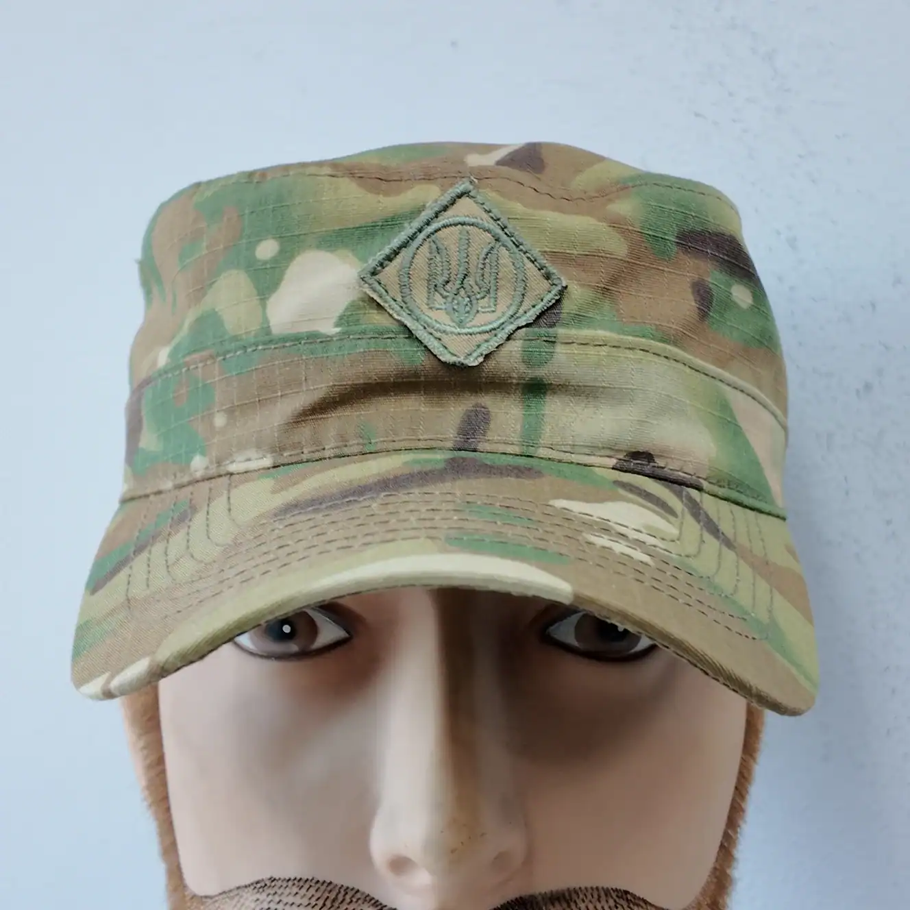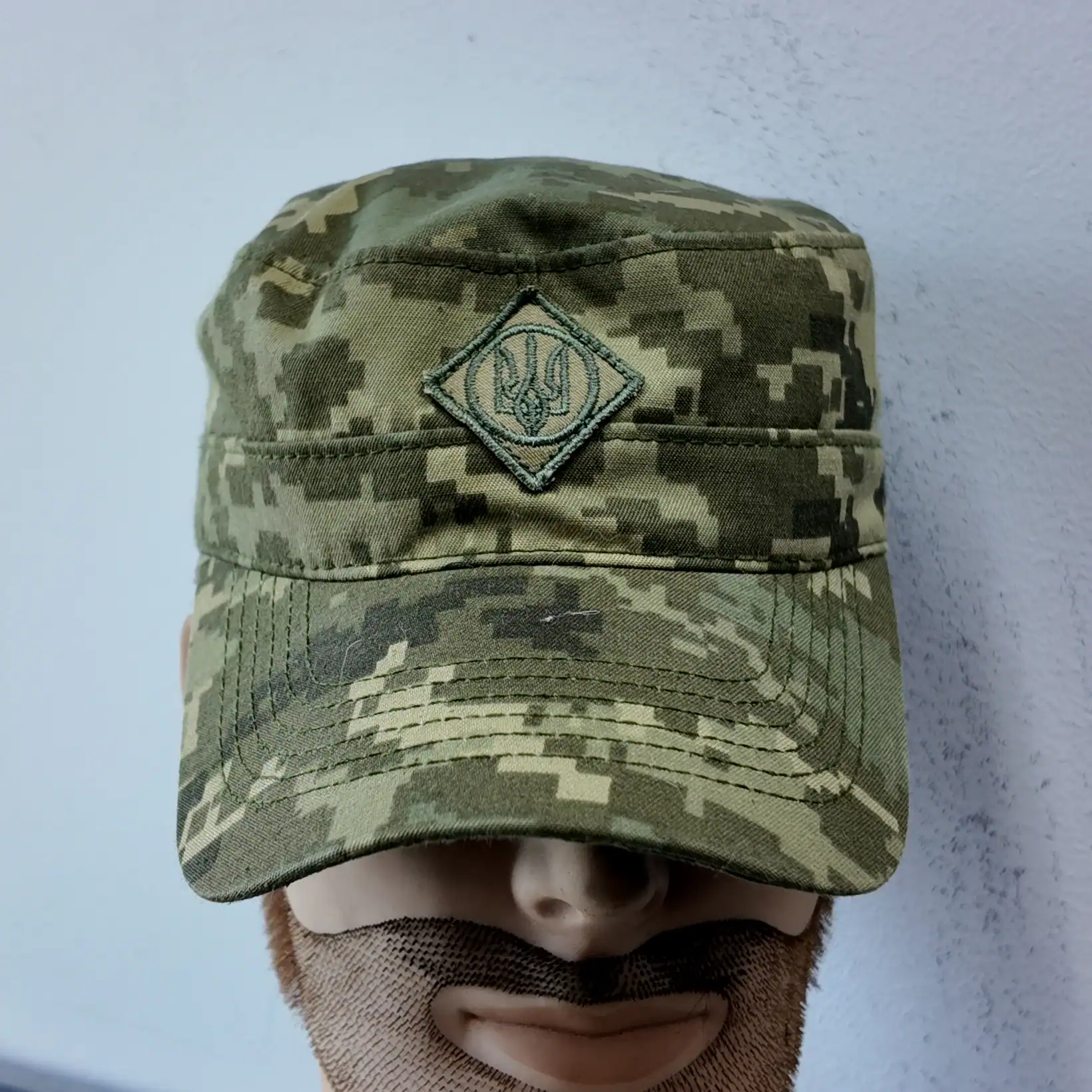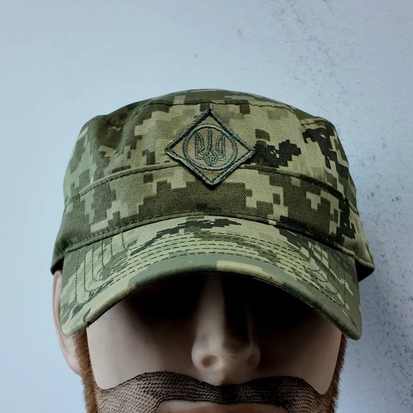 Ukrainian Camouflage Cap Tryzub  is designed in the iconic “немка” field cut, inspired by classic German Bundeswehr uniforms. It features an embroidered Tryzub (trident) — the official coat of arms of Ukraine — proudly positioned on the front panel.