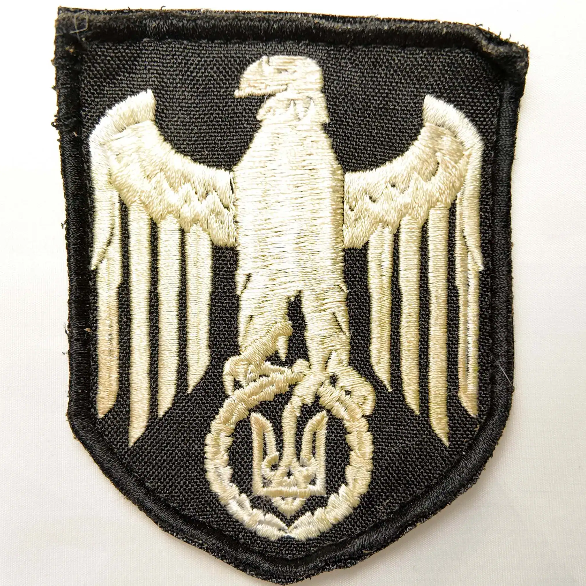 The Ukrainian Eagle Patch combat worn 8.5×7cm is an embroidered insignia depicting an eagle standing above the Ukrainian trident. Measuring 8.5×7 cm, it was worn on military uniforms and remains a notable example of symbolic wartime heraldry.