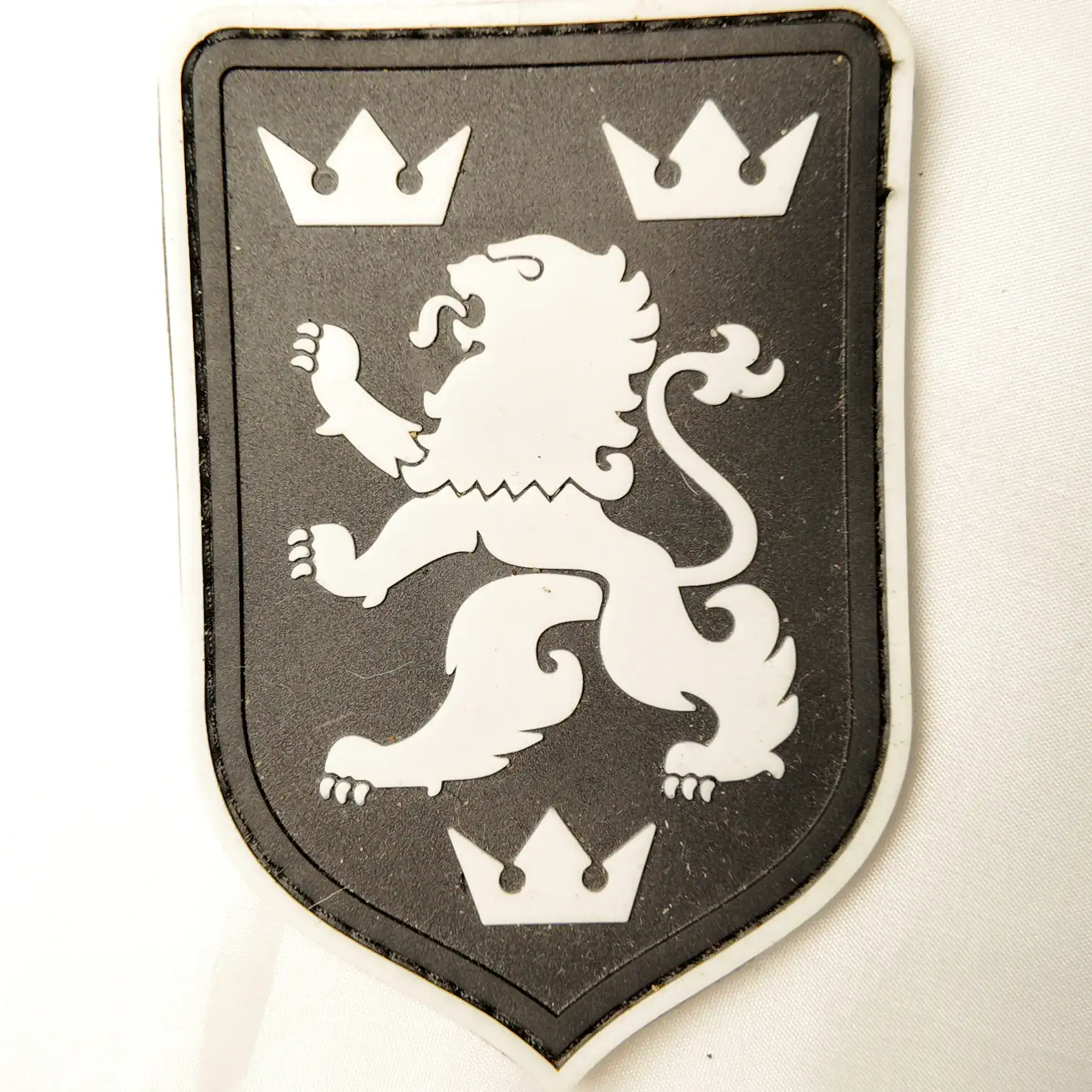 This PVC patch measures 7,5×5,5 cm and presents the heraldic lion and crown design historically associated with Galichina. The shield shape and contrasting white-on-black finish give it a distinctive and recognizable appearance.