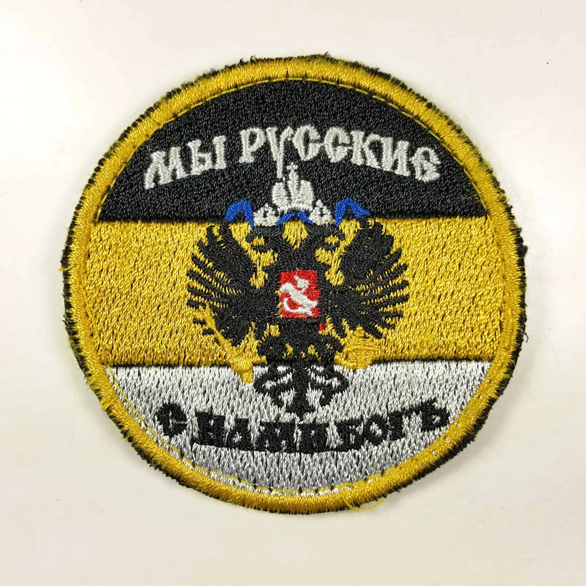 This morale patch highlights the historical symbolism of Imperial Russia with a design centered on the double-headed eagle, a key emblem of Russian statehood. The patch bears the phrase “Мы русские — с нами Бог” (We Are Russians – God with us), reflecting deep patriotic and religious sentiments tied to the Russian Empire.